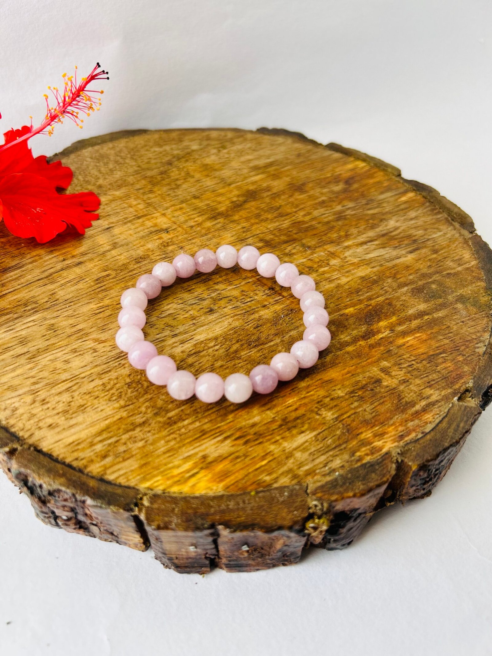 Strung on a comfortable stretch cord, this bracelet offers a graceful and feminine touch while supporting emotional well-being and loving energy.